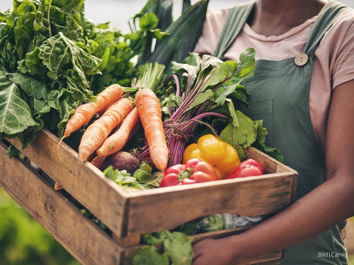 Bei der solidarischen Landwirtschaft (Solawi) schließen sich Verbraucher*innen und Landwirt*innen zusammen, um gemeinsam nachhaltige Landwirtschaft zu fördern. Teilnehmende zahlen einen festen Betrag und erhalten im Gegenzug regelmäßig eine Kiste mit frischem Gemüse und Obst. Dieses Konzept ermöglicht es Landwirt*innen, unabhängig von schwankenden Marktpreisen zu wirtschaften, und sorgt für eine regionale Verteilung von Lebensmitteln.